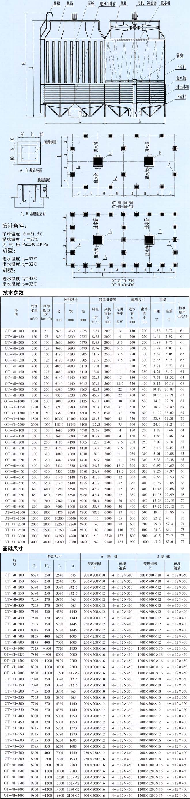 OT-VII OT-VIII方形逆流机力喷雾式低噪声冷却塔(工业型冷却塔)