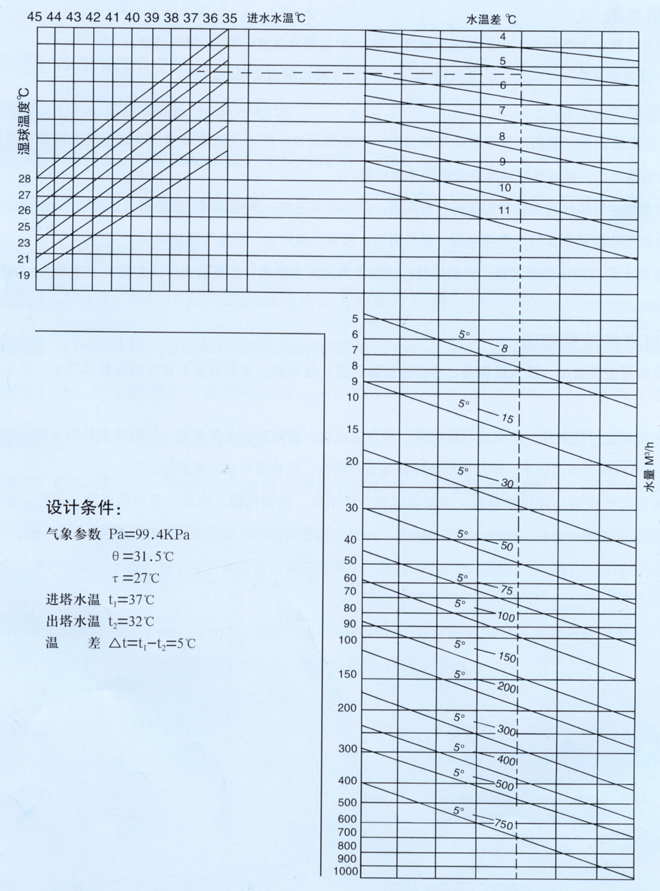 OT-III逆流工业冷却塔、OT-IV方型逆流冷却塔选用曲线、OT-VI横流