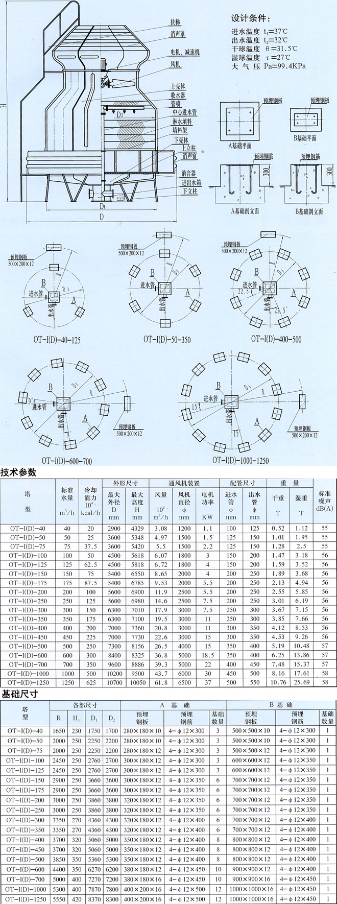 OT-I(D)节能低噪声玻璃钢冷却塔