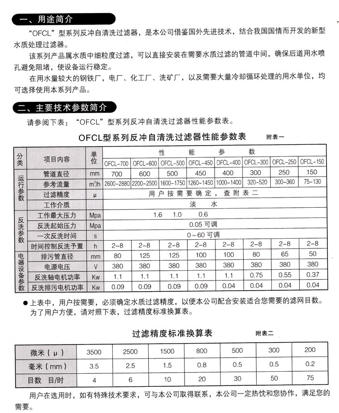 OFCL型系列反冲自清洗过滤器